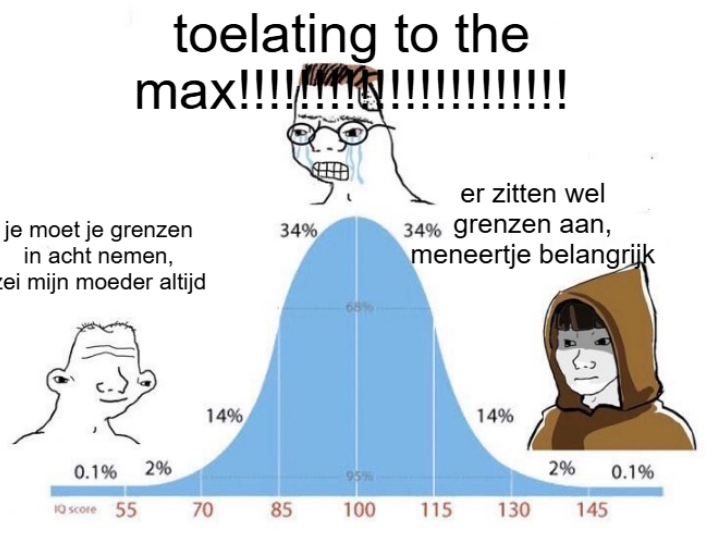 Meer in algemene zin: die mensen van de middengroep zijn zo aan het “maxxen” met alles, zo hoog in het schema, dat de mensen links en rechts, mensen die nog wel verbinding hebben met de realiteit, zich opvreten van ergernis